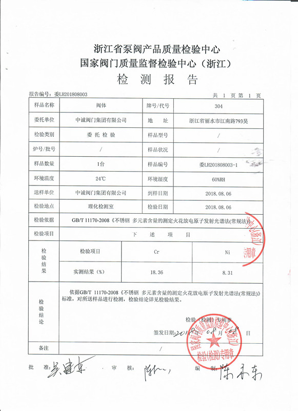 中诚阀门集团CF8原材料通过国家相关部门检测